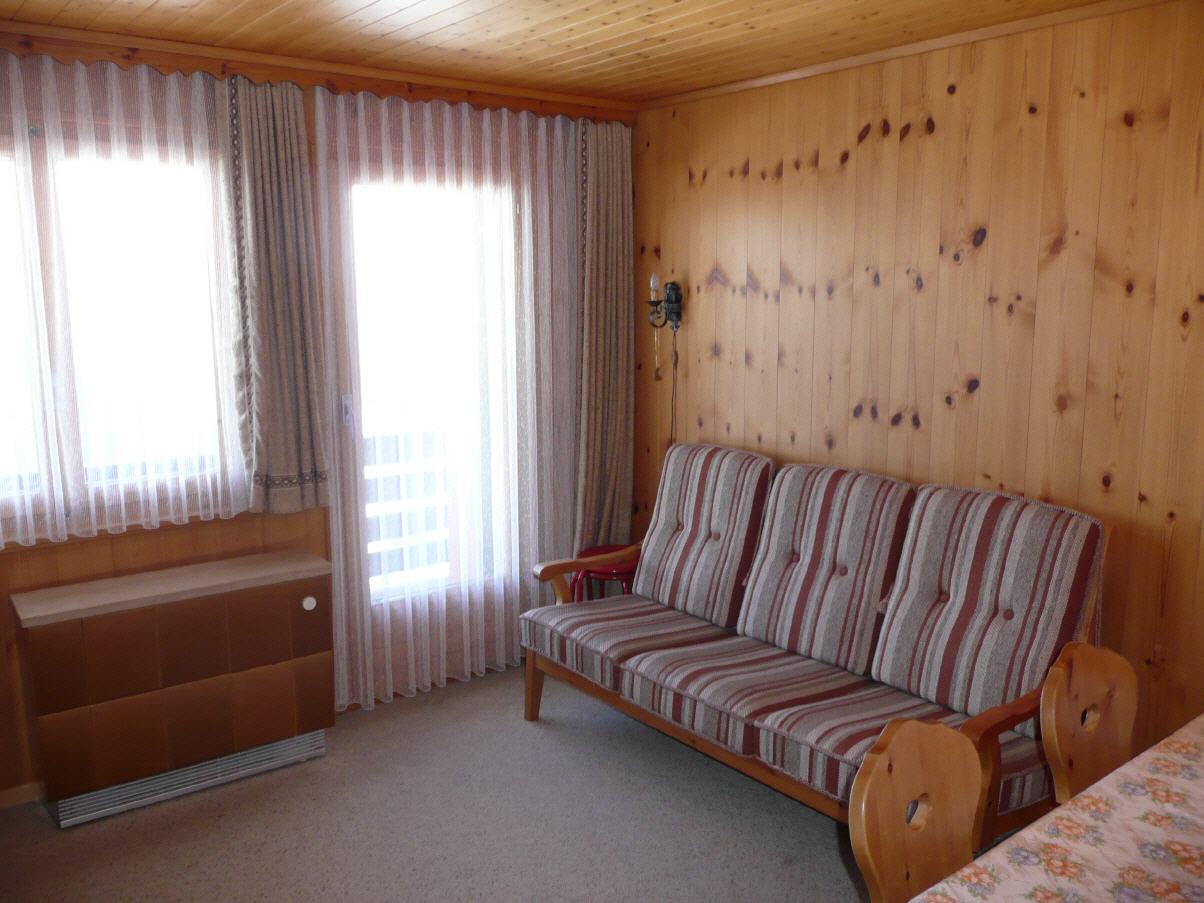 Im Wohnzimmer befinden sich zwei Klappbetten, Wandschränke, Eckbank mit direkter schöner Aussicht auf die Bergketten.