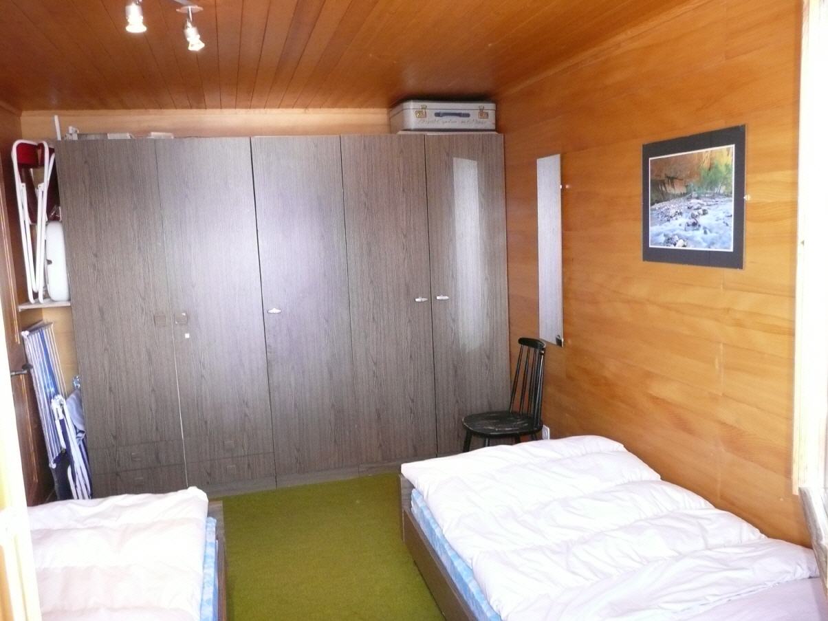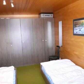 Das Schlafzimmer hat zwei getrennten Betten und Wandschränke.