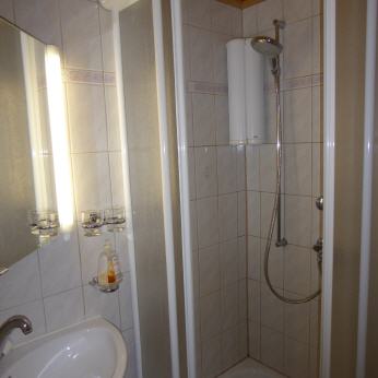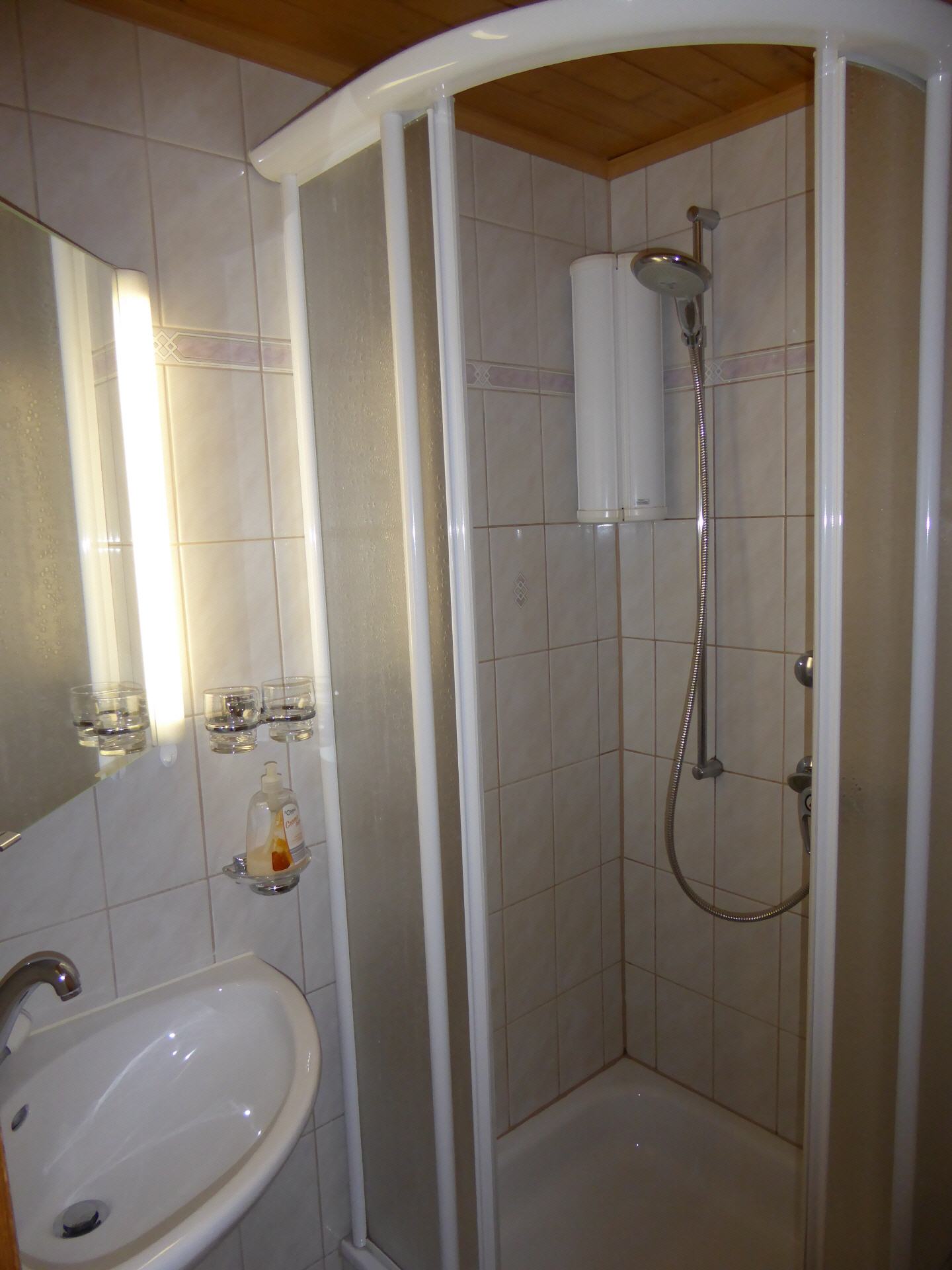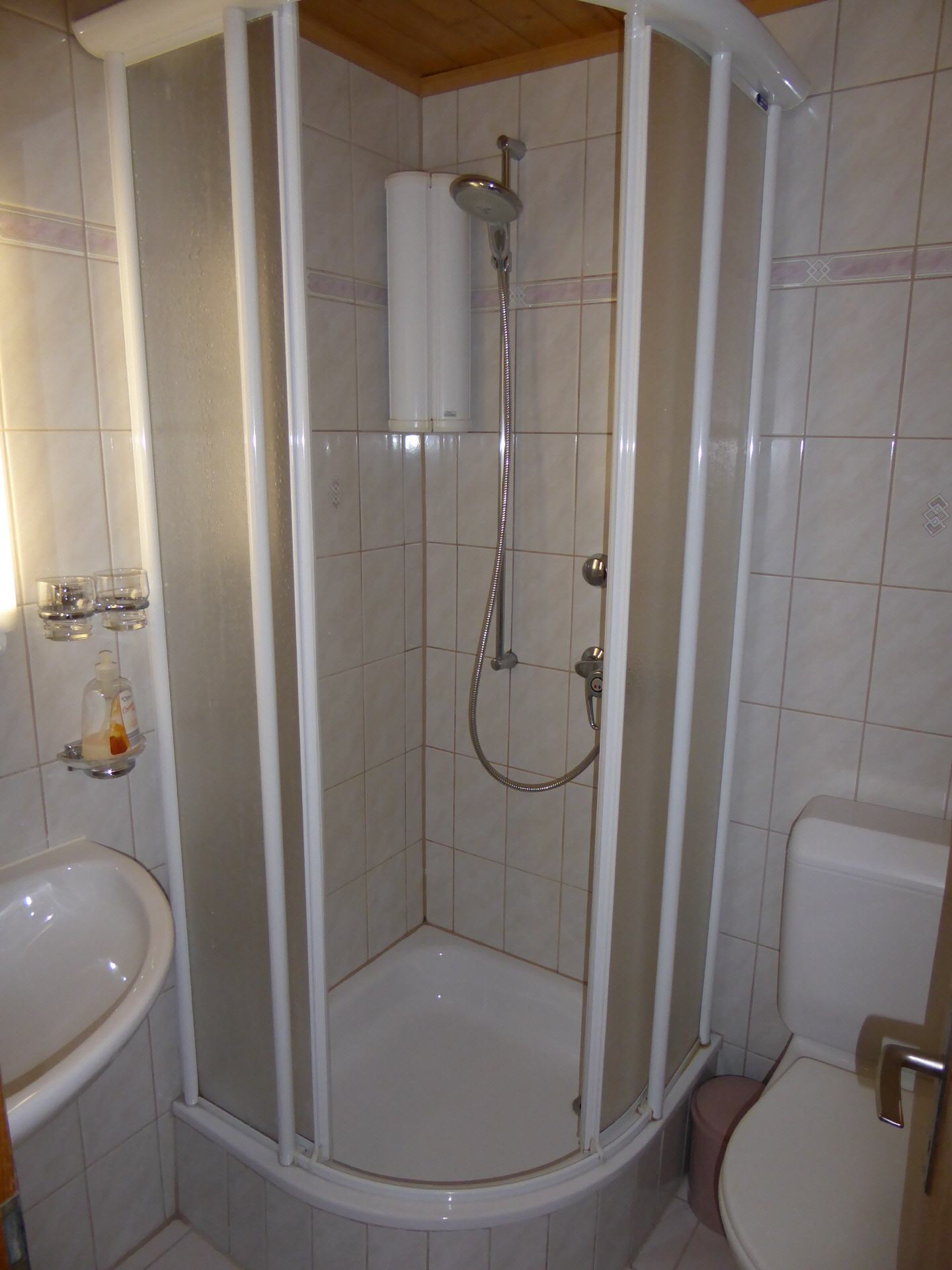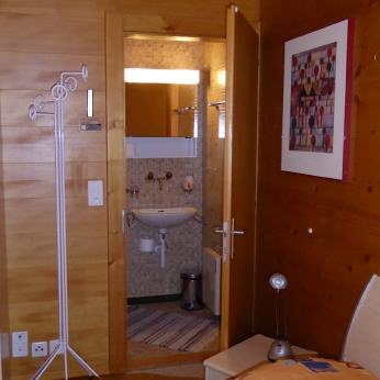 Ein Bad mit Dusche, WC, Lavabo, zweite Toilette in einem Schlafzimmer